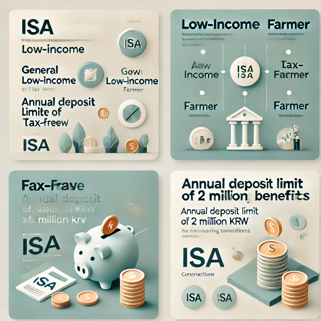 ISA 계좌는 일반형, 서민형, 농어민형으로 나뉘며, 각 유형에 따라 가입 대상과 비과세 한도가 다릅니다.