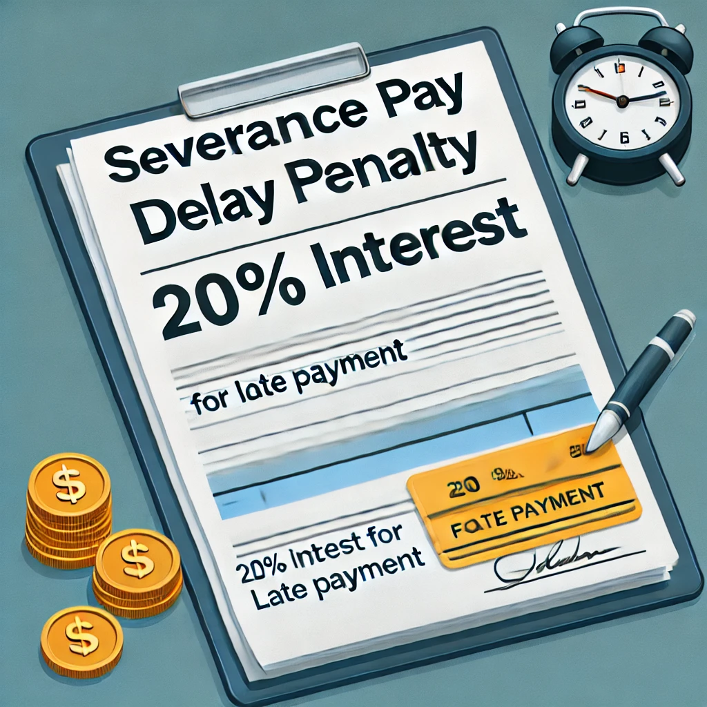 - 퇴직금 지급기한을 초과할 경우, 사업주는 지연일수에 대해 연 20%의 지연이자를 지급해야 합니다.